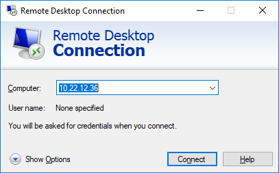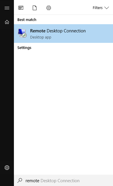 Launch “Remote Desktop Connection” from the Start menu.