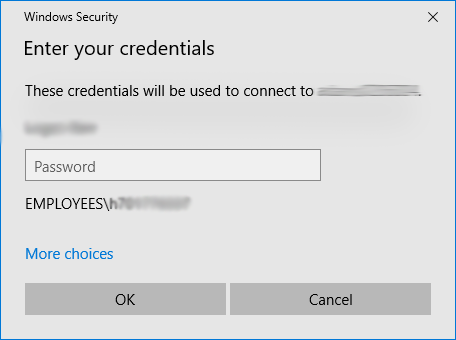 Login to the VM using your windows credentials. Alternatively, you can sign in as another user by clicking more choices. Usually, the username is “admin”, but check with your instructor if you are unsure.