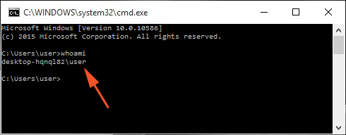 Write down the output, e.g. desktop-hqnql82\user in the above example